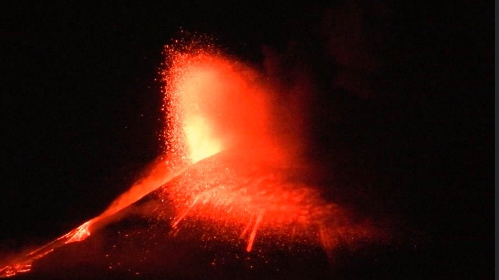Mount Etna erupted Wednesday morning for the first time in over a month, and one onlooker filmed the blast while birds sang nearby.
