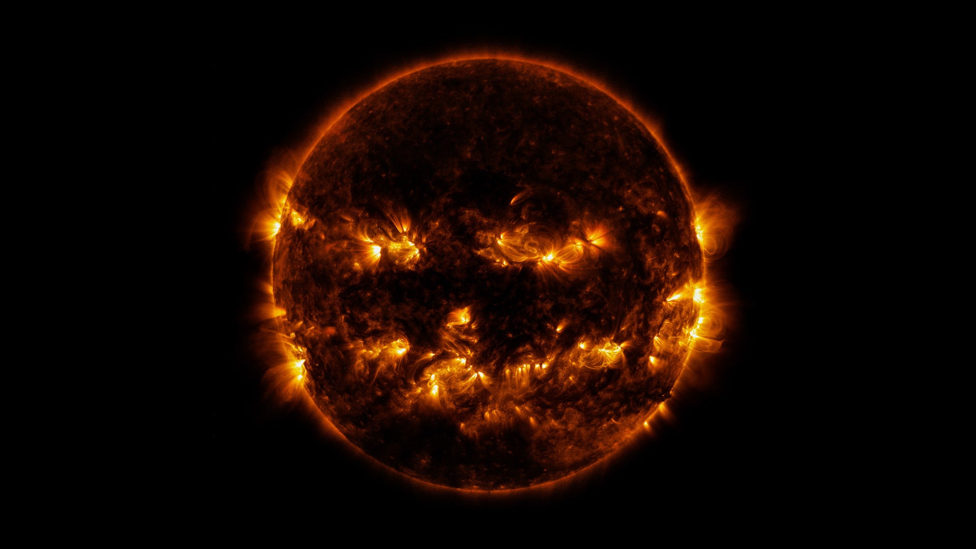 - NASA Shares Spooky Image of Jack-O’-Lantern SunJan 14, 2020, 2:46 pm ESTThe sun looks like a giant jack-o’-lantern in a spooky image captured by NASA.